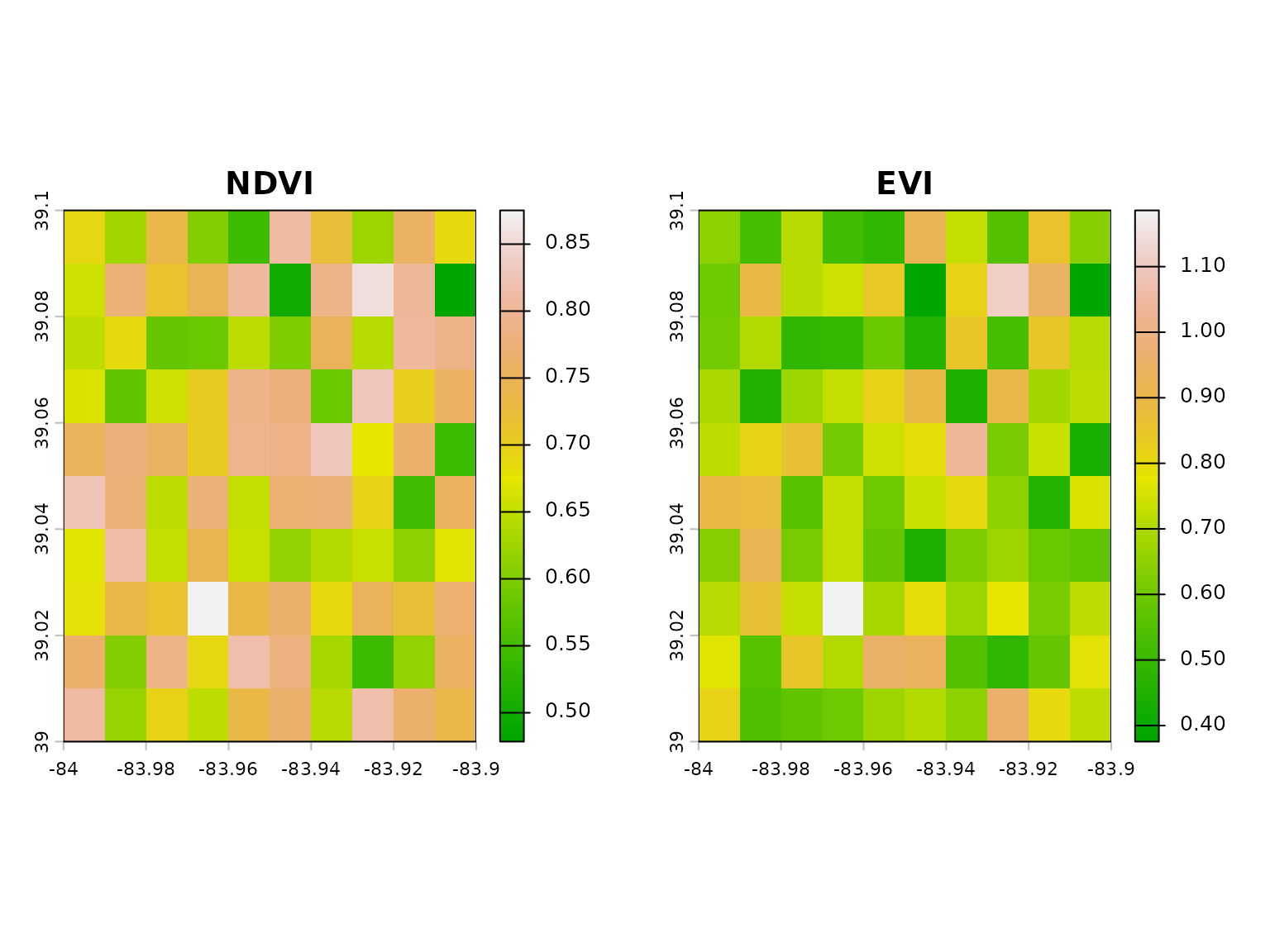 # Compare NDVI and EVI
